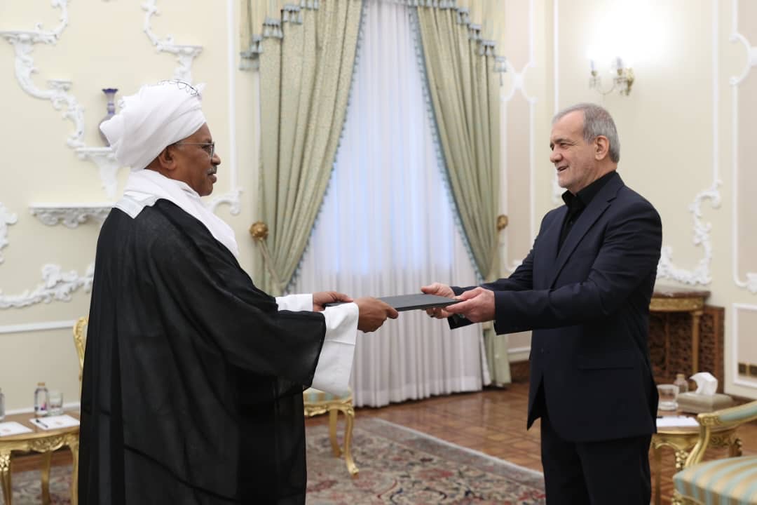 قدم السيد السفير د. عبد العزيز حسن صالح أوراق اعتماده للسيد مسعود بزشكيان رئيس الجمهورية الإسلامية الإيرانية، صباح يوم الإثنين الموافق ٣٠ سبتمبر ٢٠٢٤م، حيث رحب الرئيس الإيراني بالسيد السفير متمنيا له التوفيق والسداد في مهمته في تعزيز علاقات البلدين وطلب نقل تحياته للسيد الفريق أول ركن عبد الفتاح البرهان رئيس مجلس السيادة في السودان، مؤكدا حرص إيران على الشراكة الاستراتيجية مع السودان.