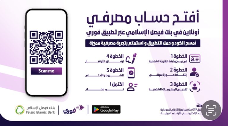 الآن عبر تطبيق فوري، يقدم لكم بنك فيصل الإسلامي خدمة فتح الحساب أونلاين خلال خطوات بسيطة و سريعة و خلال دقائق فقط. تأتي هذه الخدمة الجديدة كلياً مما تتيح لك فتح حساب ببنك فيصل الإسلامي من منزلك أو مكان عملك أو أي مكان وذلك عبر هاتفك المحمول في أي زمان ومكان دون الحاجة إلى زيارة فروع البنك.