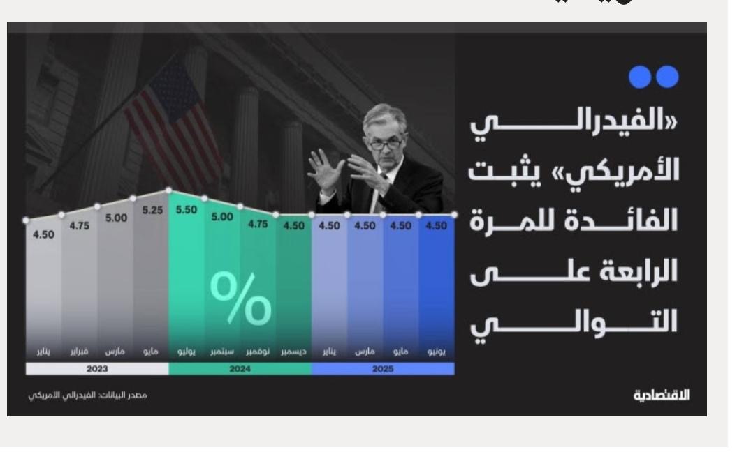 صوتت اللجنة الفيدرالية للسوق المفتوحة، اليوم الأربعاء، لصالح الإبقاء على سعر الفائدة المرجعي ضمن نطاق 4.25% و4.5%، وذلك للمرة الرابعة في العام الجاري، بعدما خفضته 3 مرات متتالية في اجتماعات سبتمبر ونوفمبر وديسمبر بإجمالي نقطة مئوية كاملة.