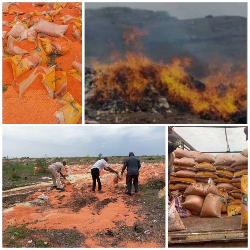 في إطار جهودها لحماية المستهلك والإقتصاد الوطني، قامت الهيئة السودانية للمواصفات والمقاييس فرع ولاية سنار بإبادة (1,279) جوال عدس و(88) جوال أرز أصفر تالف وغير مطابق للمواصفات، يقدر وزنها بحوالي (25) طن. تمت الإبادة بحضور وكيل النيابة الأعلى للنيابات المتخصصة، الأمن الاقتصادي، مباحث التموين ، الصحة بالمحلية ، والإعلام وذلك بمكب مدينة سنار الجنوبي.