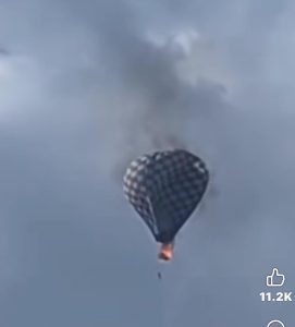 وفي مقطع فيديو آخر تم تداوله على مواقع التواصل الاجتماعي، يمكن رؤية شخصين يسقطان في الهواء، بينما تتسع رقعة الحريق داخل السلة.