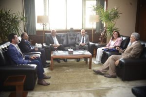 الدكتور محمد فايز فرحات، رئيس مجلس إدارة مؤسسة الأهرام، في مكتبه اليوم، الأستاذ الدكتور أحمد عبد الله زايد، مدير مكتبة الإسكندرية، وذلك بحضور الكاتب الصحفي محمد إبراهيم الدسوقي، رئيس تحرير بوابة الأهرام، والأهرام المسائي ومجلة ديوان الأهرام، والكاتب الصحفي علاء عبد الهادي، رئيس تحرير أخبار الأدب السابق، وبحضور وفد من مكتبة الإسكندرية.