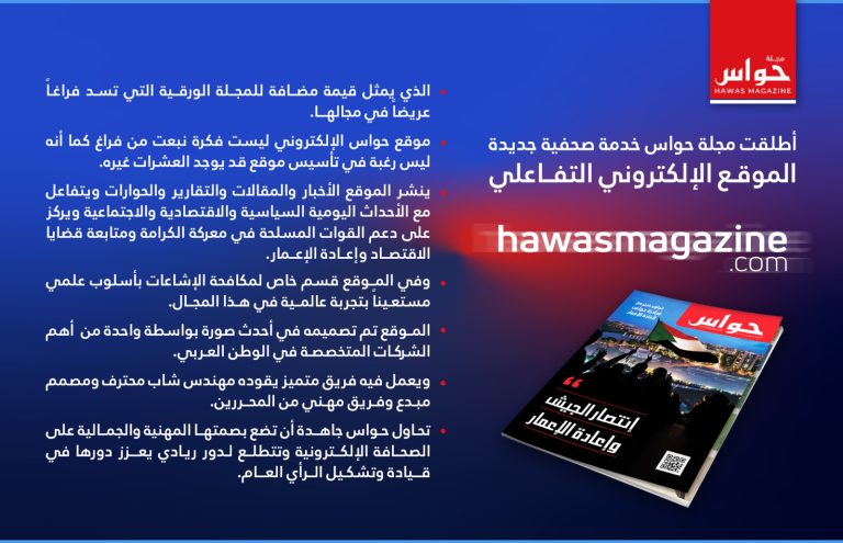 أطلقت مجلة حواس خدمة صحفية جديدة الموقع الالكتروني التفاعلي يمثل قيمة مضافة لمجلة حواس الورقية التى تسد فراغا عريضا في مجالها .