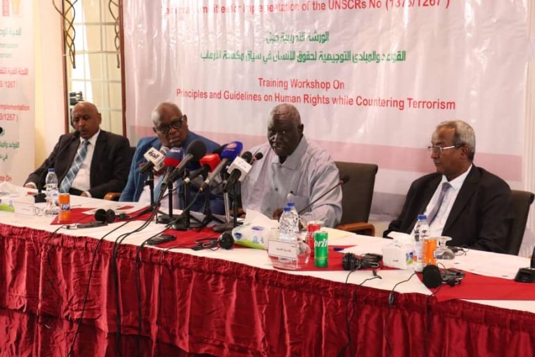 جاء ذلك لدى مخاطبته صباح اليوم بقاعة فندق كورال ببورتسودان فاتحة أعمال الورشة التدريبية حول القواعد والمبادئ التوجيهية لحقوق الانسان فى سياق مكافحة الإرهاب التى نظمتها اللجنة الفنية لتنفيذ قرارات مجلس الامن الدولي ( 1267\1373) والقرارات اللاحقة التابعة للهيئة الوطنية لمكافحة الإرهاب بحضور وزراء العدل ، الدفاع ، الداخلية ، الرعاية الاجتماعية ومدير جهاز المخابرات العامة وممثلي البعثات الدبلوماسية والمنظمات الأجنبية الدولية والاقليمية والمهتمين بقضايا حقوق الانسان فى السودان.