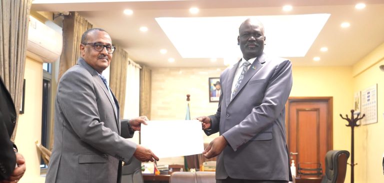 عصام كرار يسلم وزير خارجيةجنوب السودان نسخةمن أوراق اعتماده