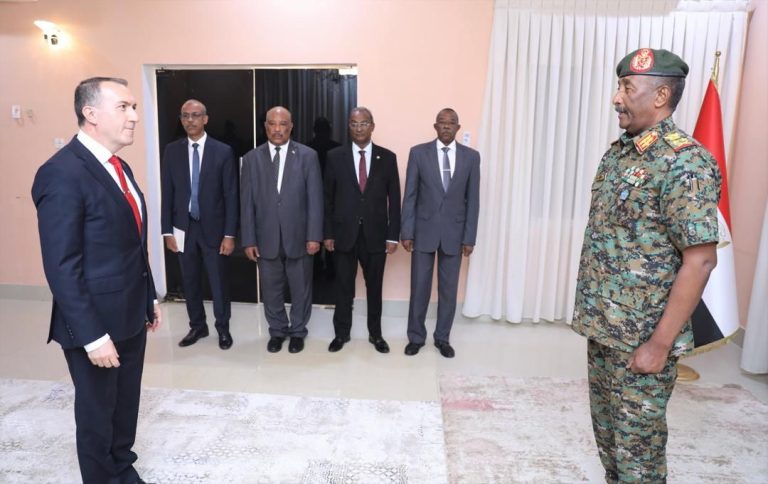 تسلم رئيس مجلس السيادة الإنتقالي القائد العام للقوات المسلحة الفريق أول ركن *عبدالفتاح البرهان* اليوم أوراق إعتماد سفير جمهورية تركيا لدى السودان السفير فاتح يلدز بحضور الأمين العام لمجلس السيادة الفريق ركن محمد الغالي علي يوسف ووكيل وزارة الخارجية السفير حسين الأمين .