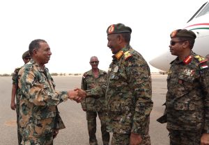 حيث كان في إستقباله بمطار مروي والي الولاية الشمالية المكلف عابدين عوض الله وقائد الفرقة 19 مشاة بمروي اللواء ركن سليمان كمال حاج الخضر .