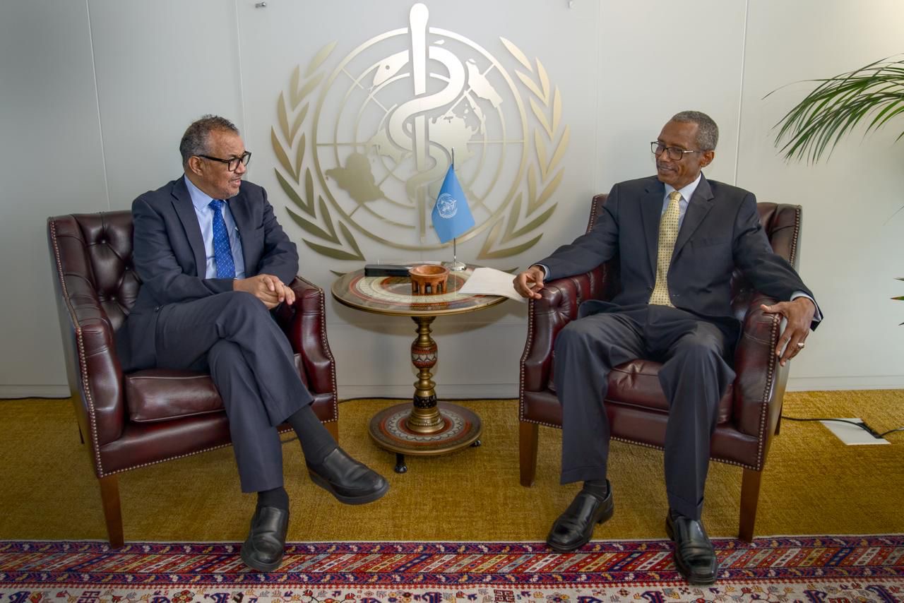في إطار تحركات بعثة السودان الدائمة لدى الأمم المتحدة بجنيف للتنوير بالأوضاع الإنسانية بالبلاد في ظل استمرار انتهاكات وفظائع المليشيا المتمردة وآثار السيول والفيضانات التى ضربت بعض أجزاء البلاد، اجتمع السيد المندوب الدائم السفير حسن حامد حسن مع السيد تيدروس ادهانوم غيبريسوس، المدير العام لمنظمة الصحة العالمية، حيث سلم الأخير قائمة بالاحتياجات الطبية العاجلة بعد أن قدم له تنويراً حول مجمل الأوضاع الإنسانية والصحية بالبلاد.