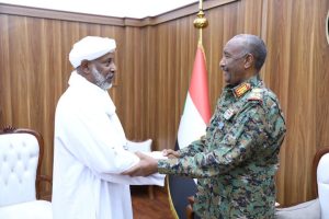 وقال جعفر في تصريح صحفي ” جئنا بإسم مولانا الحسيب النسيب السيد إبراهيم الميرغني الختم للقاء رئيس المجلس السيادي وإطلاعه على دور الطريقة الختمية في شرق السودان ومشاركتها في دعم القضايا الوطنية ومساهماتها المقدرة في تعزيز السلم والأمن المجتمعي “.